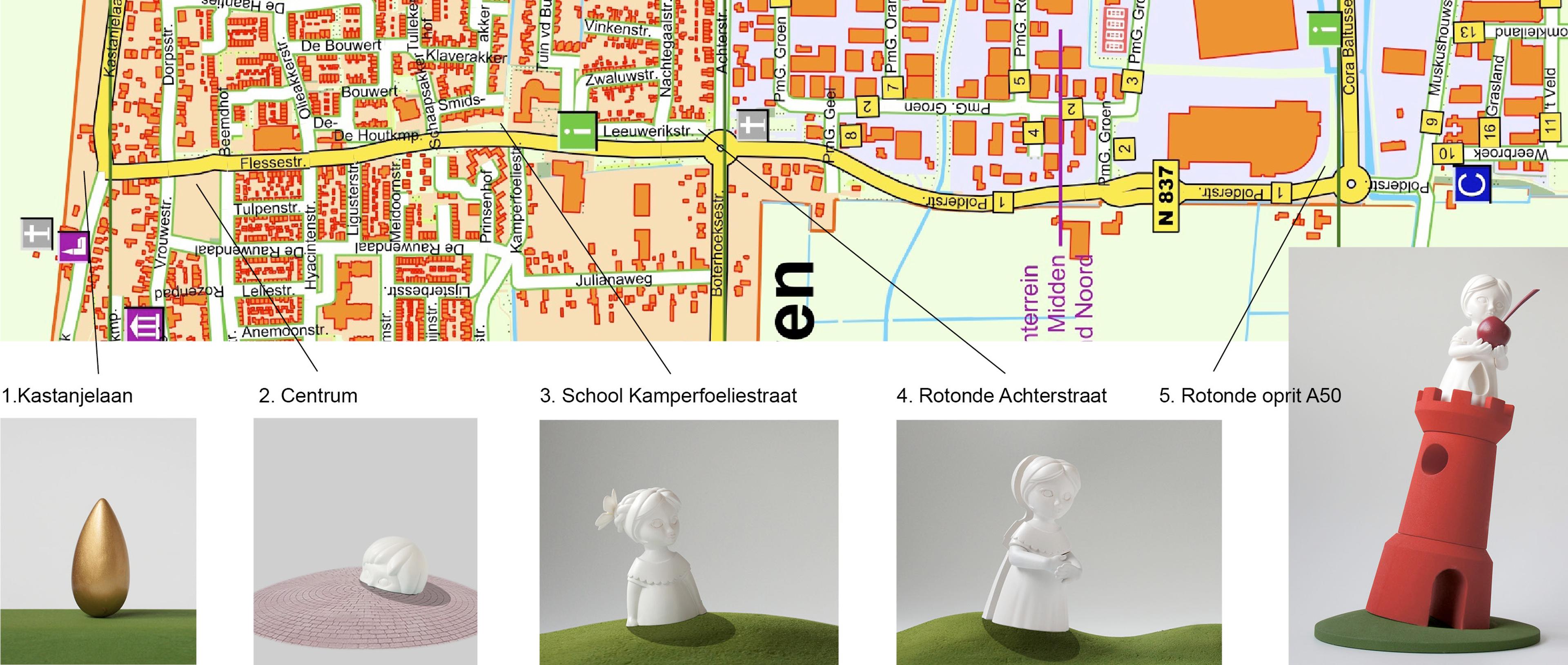 Kunstroute in de openbare ruimte Heteren 2023 Opdrachtgever: Gemeente Overbetuwe 5 Sculpturen van 1 tot 8 meter hoog Gewapend polyester, plaatstaal en brons